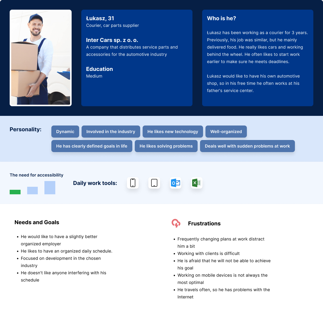 The business department provided a specific list of user problems, errors and elements that raised doubts, I conducted research with users of individual elements and paths. I followed the example of CRM systems where large amounts of data are presented in a responsive and user-friendly way for all screens. I analyzed the competition and calculated good and bad elements to include or omit them in my design
